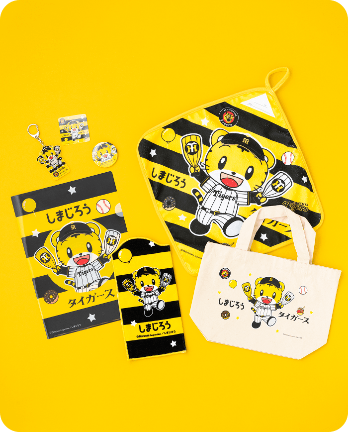 阪神タイガースとのコラボグッズが全10種類。お出かけや日常で使えるグッズがいっぱい。身近にあるだけで、元気になれます。