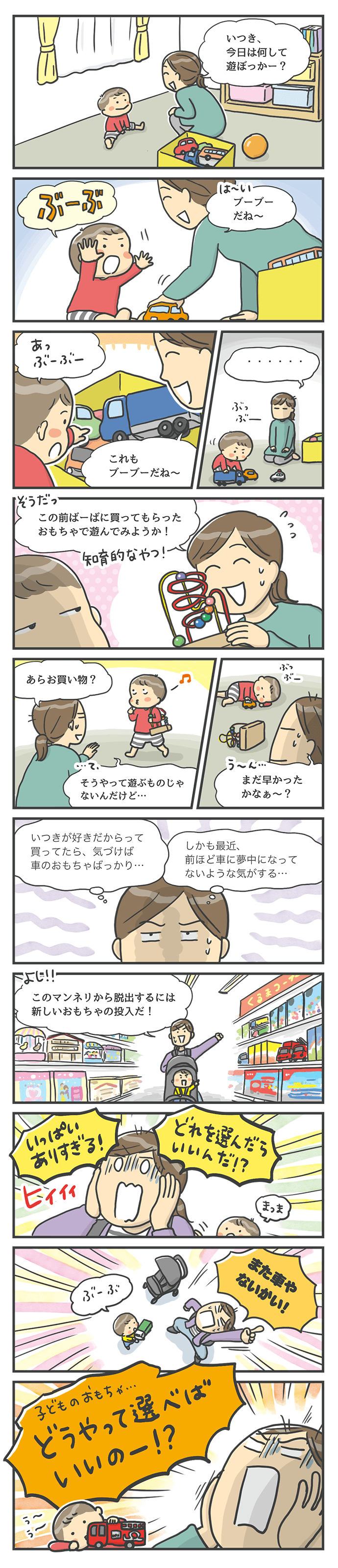 お子さまにとって、遊びは難しすぎても、簡単すぎてもつまらないもの。「ちょっと工夫したらできる」くらいのレベルの遊びなら、今すぐにやってみたい!という気持ちが高まります。押す動作ができたから、次はつまむ動作…のように、発達に合わせて少しずつレベルアップできる遊びに挑戦してみてください。