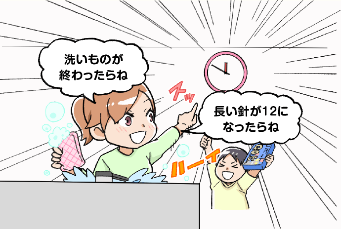「ちょっと」と言わずに具体的な時間を伝えてみると、お子さまも納得しやすくなります。