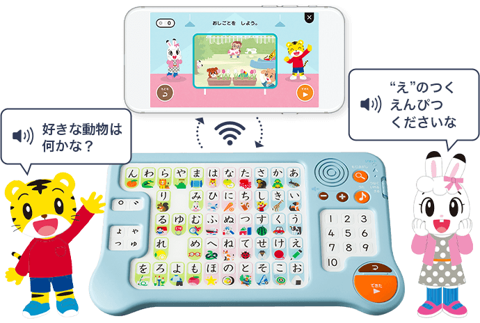 しまじろうが名前をよんでくれたり、やり取りをしてくれるから、伝えることが楽しくなり「もっとやりたい!」という意欲が育めます。