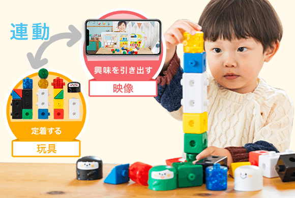 映像と連動した知育玩具で、【映像で見て→実際にやってみる】体験を通して、感覚的に吸収していけます。