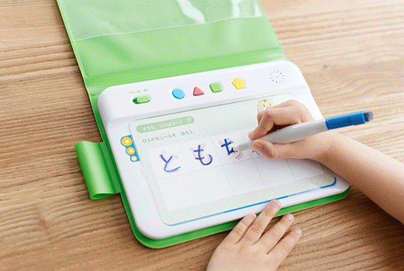 何度も書いて消して、を遊びの中で繰り返すことでひらがなを綺麗にかけるように。毎日の遊びを楽しむうちに自然とできるようになっていく教材をご用意しています。