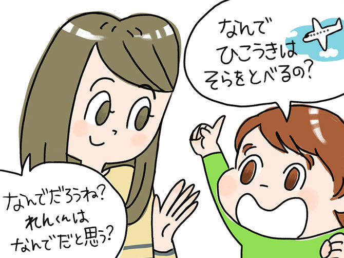 お子さまにとって、おうちのかたに聞いてもらうことはうれしいこと。「フシギだね」「おもしろいギモンに気づいたね」と気づいたことを認めたり、考える姿勢を肯定してあげることが「いろんなことが知りたい」という前向きな気持ちや、さらなるギモンをもつ姿勢につながっていきます。