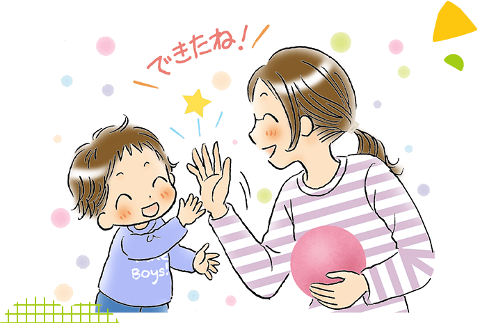 この時期のお子さまにとって、認められる、ほめられるなどの反応があることが大事。 まわりの反応によって「できた」を認識し、「もっとやってみたい」という意欲につながります。