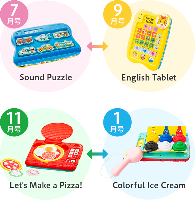 - ・2024年度以降生まれのお子さま向けには、0・1歳向け〈こどもちゃれんじ My First English〉をご用意しております。〈こどもちゃれんじ English〉は、2023年度以前にお生まれのかたにご用意しております。