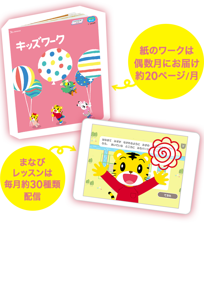 ただし、〈こどもちゃれんじ〉の教材は、その年齢におけるお子さまの心身の発達に適したカリキュラムになっていますので、まずは該当する年齢の講座から始められることをお勧めします。