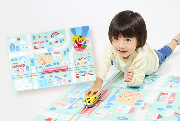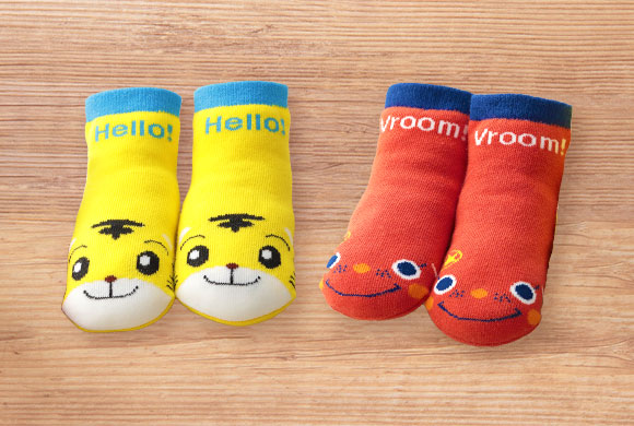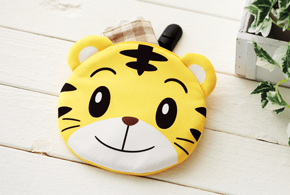 しまじろうデザインのかわいいマスク。お出かけの際に便利な、専用ケースつきです。