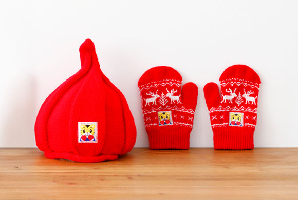 とんがりニット帽&ミトンのセット。冬のお出かけも楽しく、あったかに。