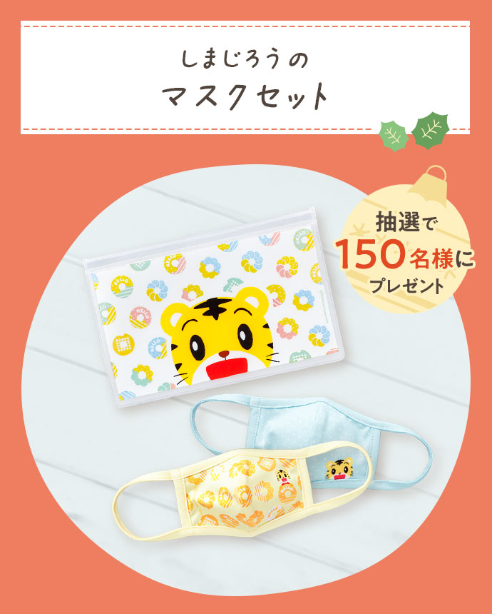 しまじろうデザインのかわいいマスク。お出かけの際に便利な、専用ケースつきです。