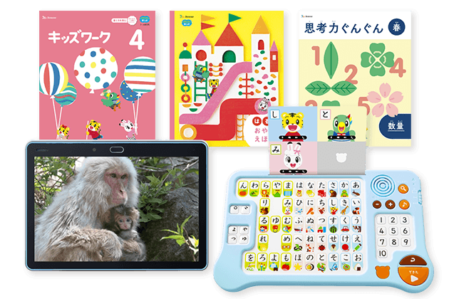 映像教材は「しまじろうアプリ」「まなびルーム」での配信となります。利用にあたっては、通信料はお客様のご負担となります。