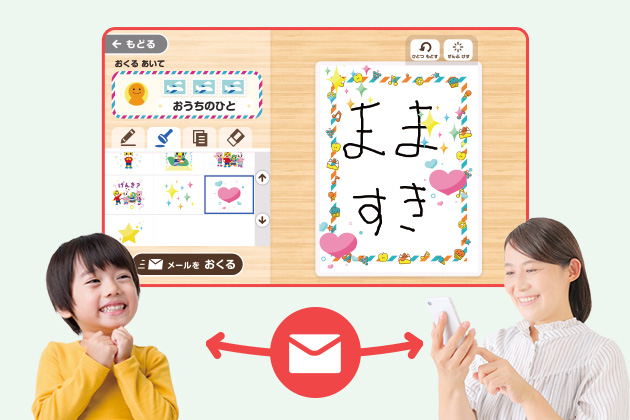 親子・祖父母など最大6名のメアドを登録可能。お子さんとメールのやりとりで離れていても応援できる。