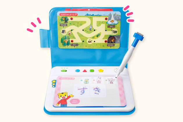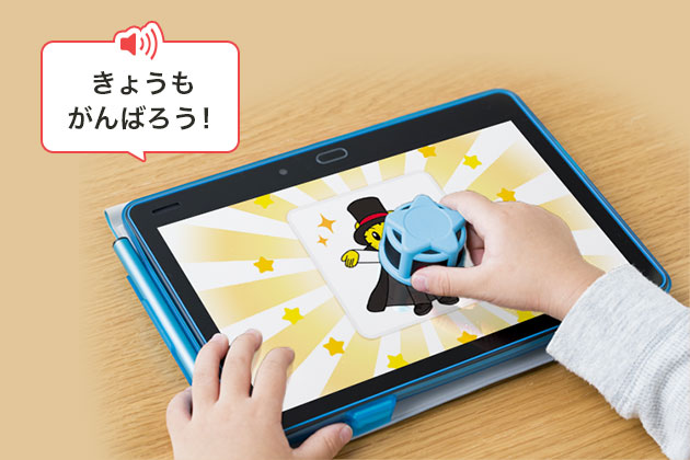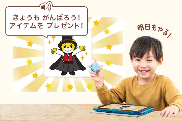 「やるきアップスタンプ」を「まなびルーム」の画面にタッチすると毎日しまじろうが応援してくれます。たくさん集めたくなる日替わりスタンプ演出で、毎日自分から学びに向かう気持ちを育てます。