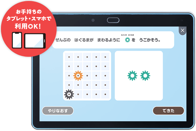 音声読み上げや自動まるつけまでしてくれるから、おうちのかたのフォローなしでも、年中さんがひとりでも自分から学べます。