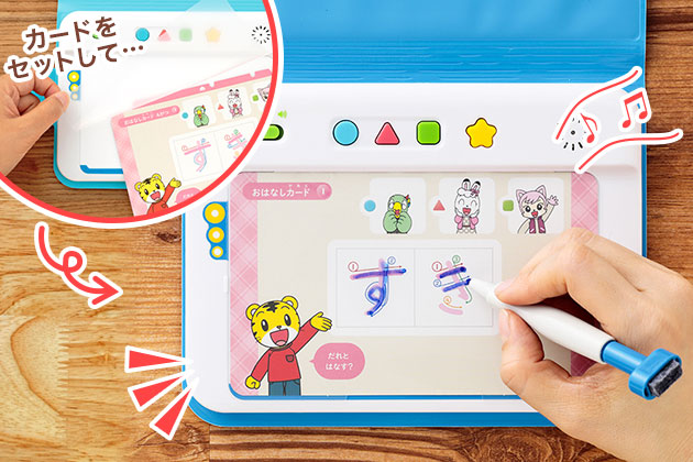つい夢中になってしまっても、しまじろうが「きゅうけいしよう」と伝えて、やりすぎを防止します。