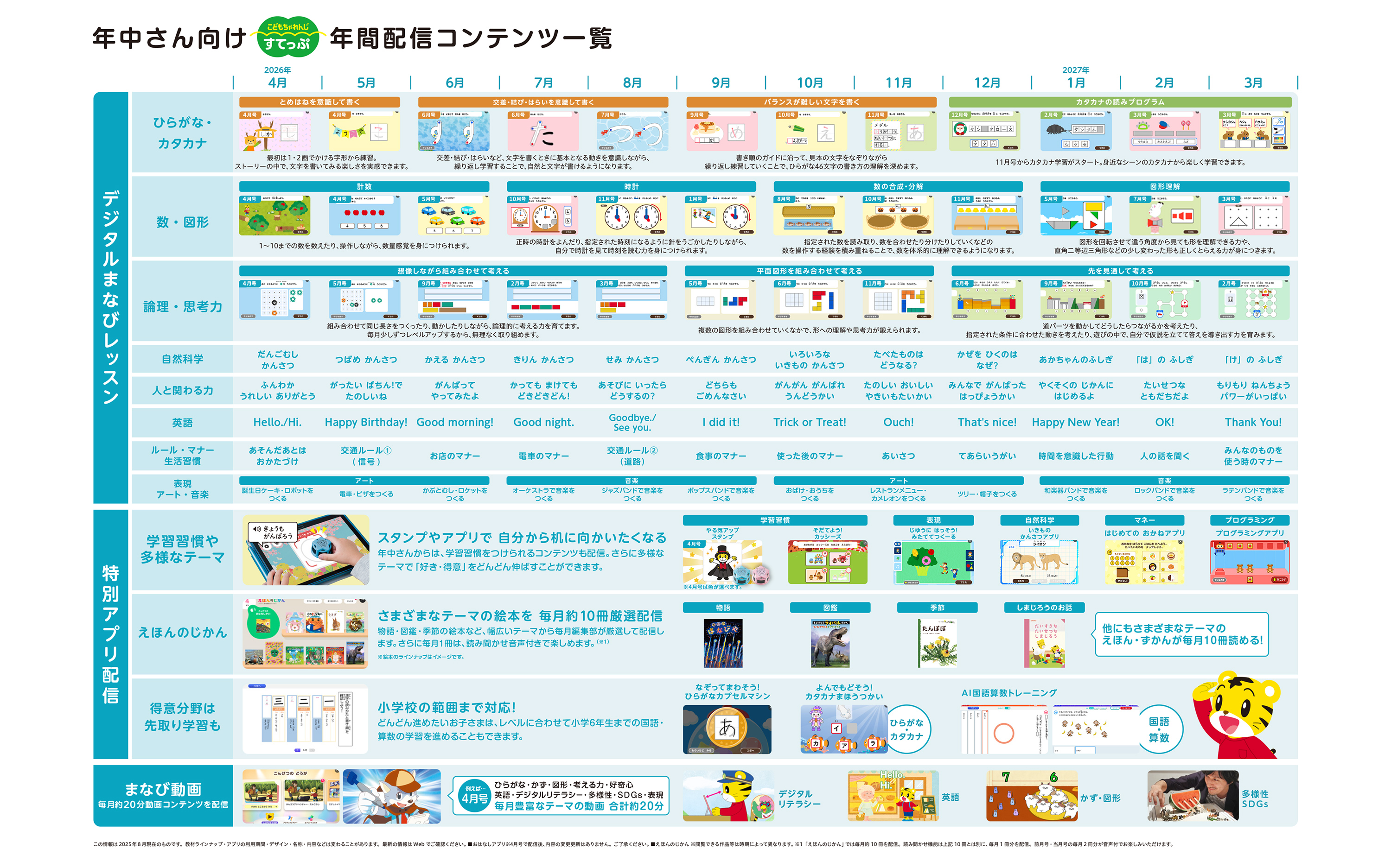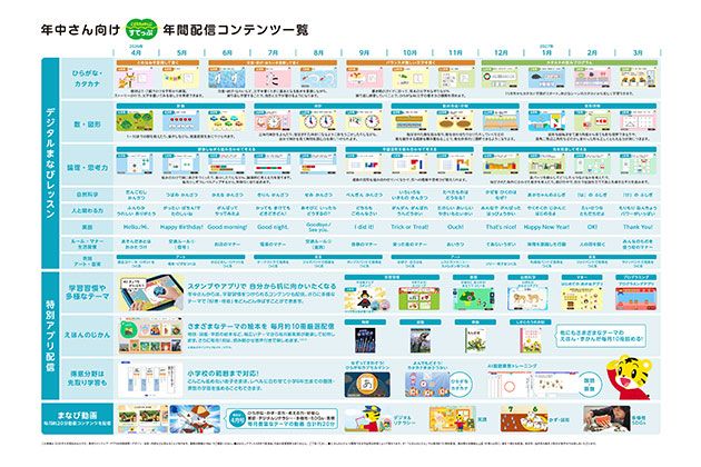 また、どの映像も、年中さんの発達に合った優しい映像を作っています。さらに、からだを動かす「アクティブシアター」など、「見るだけ」にならない工夫もいっぱいです。