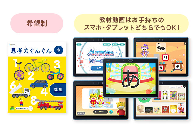 音声読み上げや自動まるつけまでしてくれるから、おうちのかたのフォローなしでも、年中さんがひとりでも自分から学べます。