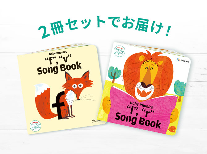 聞き分けにくい英語の音❝l❞と❝r❞または英語ならではの音❝f❞と❝v❞にオリジナルの歌詞絵本で親しめます。〈My English Radio〉に絵本をかざすと英語の歌を聞くことができます。