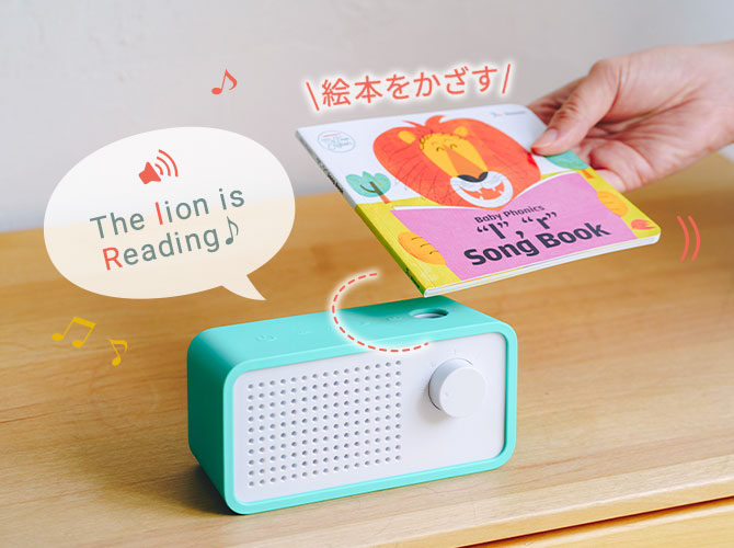 絵本や歌詞カードをかざすだけで、英語の歌や音声を自動再生。