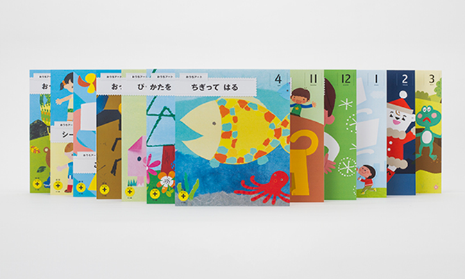 手指が器用に動かせるようになる3・4歳にぴったりなセット。ちぎる・切る・貼るなどのいろいろな表現手法にふれることで、手指の巧緻性を育みながら、表現する楽しさを感じられます。