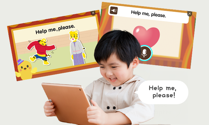 1回約5分の聞くゲームと録音・再生ゲームで小学校につながる英語を「聞く・話す」力を育めます。