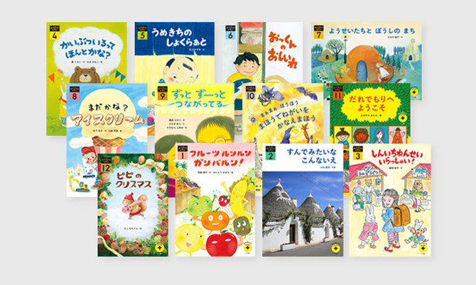 身近なもの・ことの見えない部分も想像できるようになる4・5歳の時期に合わせて、身近なお話から想像・空想の世界を楽しめるお話まで、幅広いテーマで読解力を育みます。