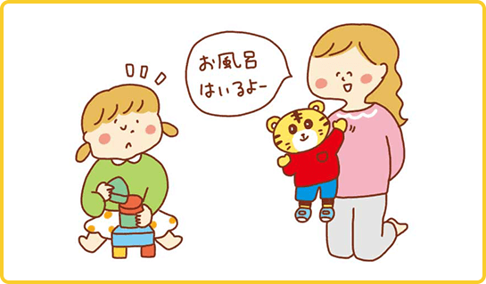 普段お子さまとの時間でついイライラしてしまう場面でも、しまじろうから声かけをすれば「~しようよ」などやわらかい口調で話しかけやすくなり、お子さまも素直に応じやすくなります。