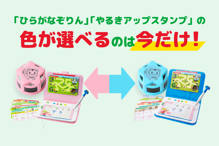 ※「なぞりんカバー」「やる気アップスタンプ」は3/31(火)までにご入会のかた限定で、2色からお好きな色をお選びいただけます。※ブルー/ピンクのセットですので、それぞれ違う色は選べません。※4月号の教材をお届け後の変更はできません。※「デジタル スタイル」のかたは「なぞりんカバー」のお届けはありません。